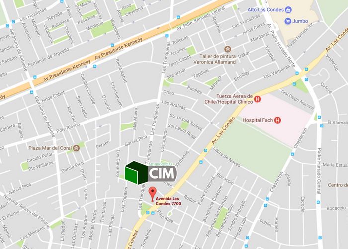 Ubicación Mini Bodegas en las Condes Mini Bodegas CIM está en la mejor ubicación de Las Condes, a paso del Mall Alto las Condes y muy cerca de tu hogar o tu negocio. Para arriendo de mini bodega en Las Condes haz click aquí. Ubicación de Mini Bodegas CIM Teléfono : +56-962511561 Avenida Las Condes 7700 Las Condes – Santiago de Chile Cotiza Mini Bodegas